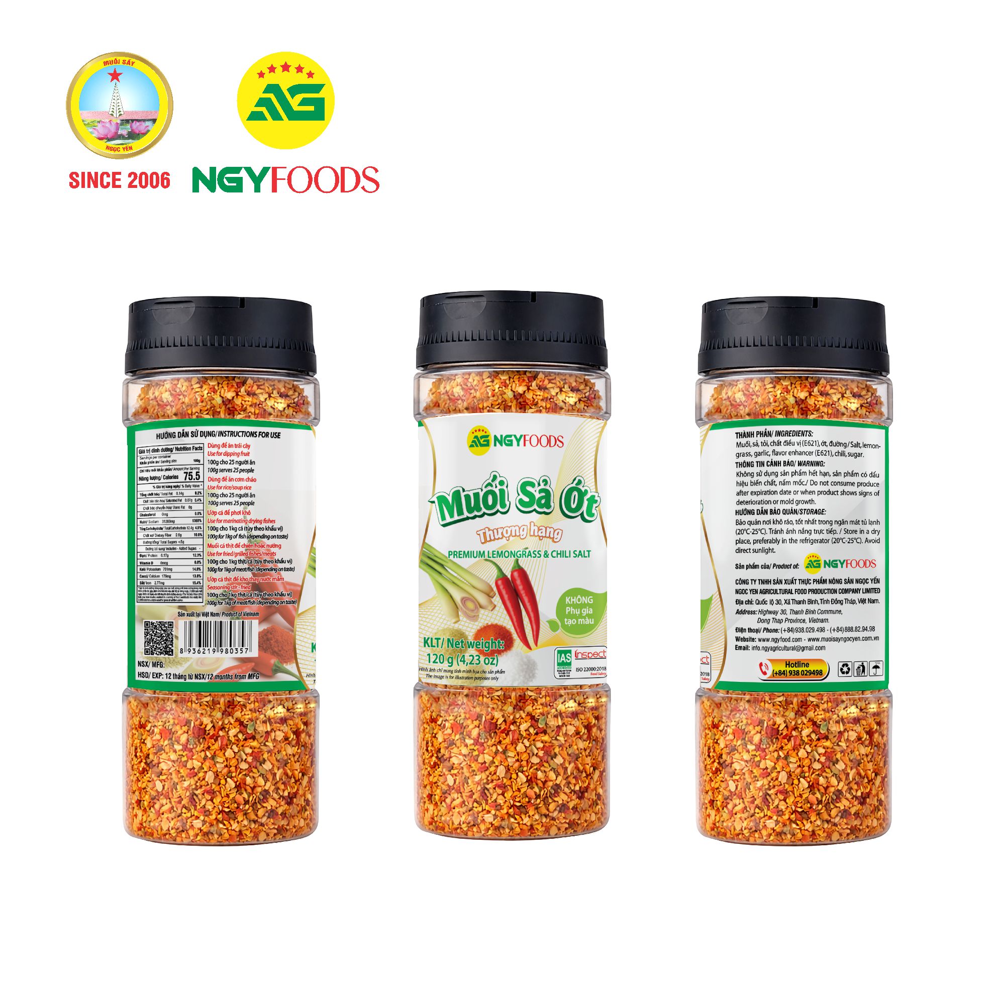 - Hũ rắc 120g (4.23 oz): tiện mang theo, dễ kiểm soát lượng dùng.
